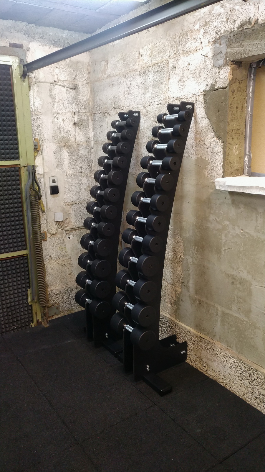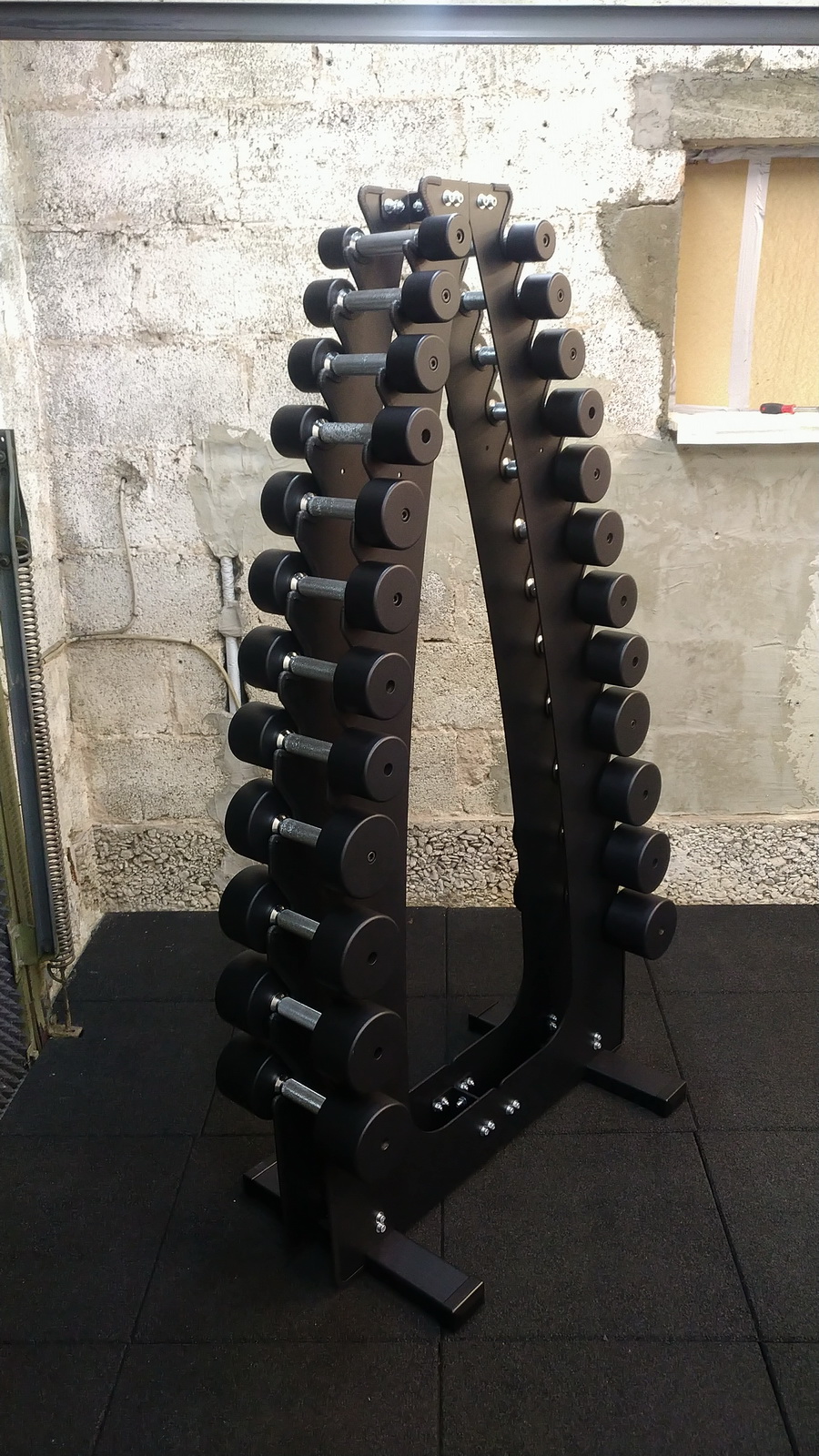 Das Hantelrack sowie die Gewichte wurden in RAL9005-feinstruktur pulverbeschichtet
